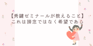 【秀鍵ゼミナールが教えること】これは諦念ではなく希望である