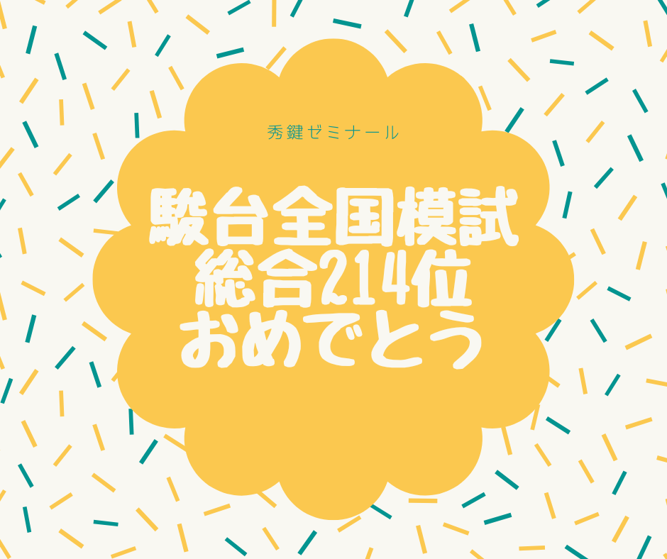 当ゼミの秀鍵生(高校一年生)が、駿台全国模試にて全国214位を獲得した
