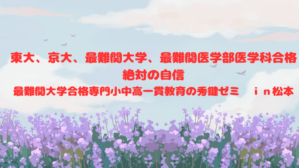 #秀鍵ゼミナール #最難関大学医学部医学科合格 #最難関大学合格専門 #小中高校一貫教育 #医学部 #慶應SFC #神戸高校 #小論文対策 #英語専門塾 ♯数学専門塾 ♯国語専門塾 ♯化学専門塾 ♯物理専門塾 #逆転合格 ♯松本市 ♯大学受験 ♯高校入試 ♯中学入試 ♯究極進学塾 ♯究極予備校 ♯塾 ♯学習塾 ♯予備校 ♯テスト対策 ♯テスト向上 ♯学年一位