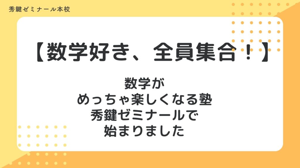 【数学好き、全員集合!】― 数学がめっちゃ楽しくなる塾、秀鍵ゼミナールで始まりました ―