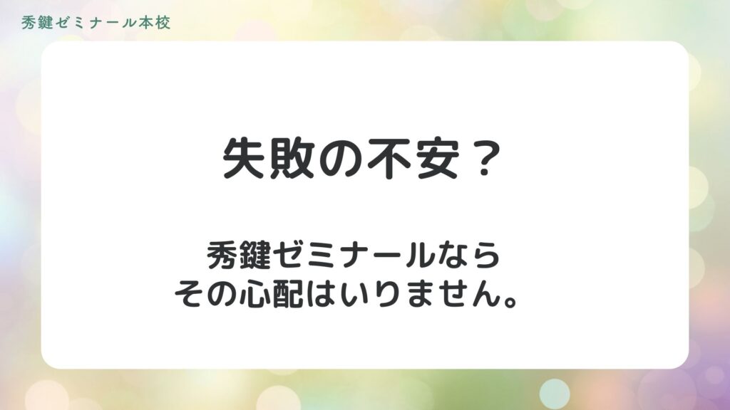 【失敗の不安?】秀鍵ゼミナールなら、その心配はいりません。