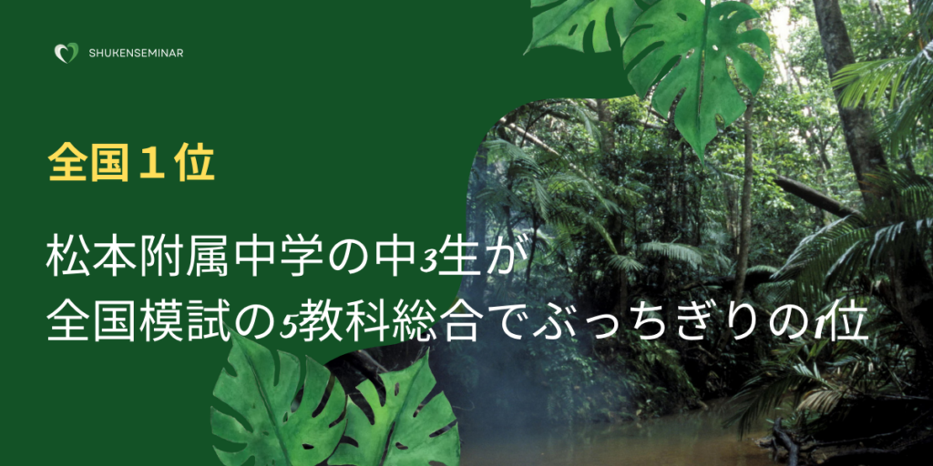 【全国1位】秀鍵ゼミナールの松本附属中学の中3生が、全国模試の5教科総合でぶっちぎりの1位