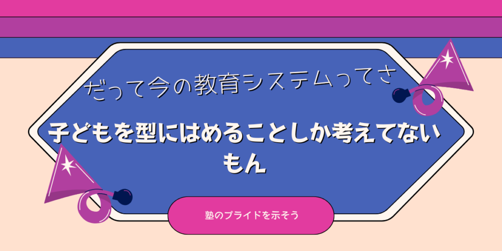 【だって今の教育システムってさ 】 子どもを型にはめることしか考えてないもん