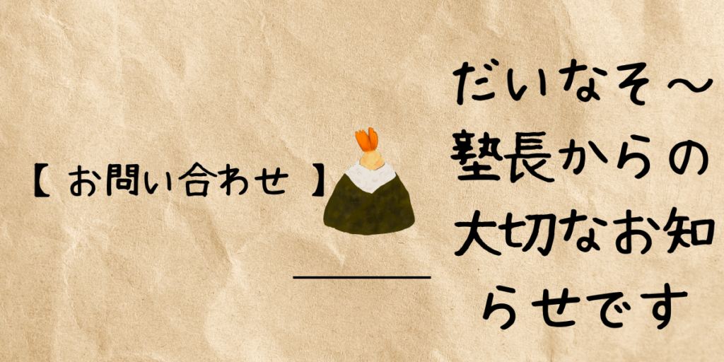 【お問い合わせ 】だいなそ~塾長からの大切なお知らせです
