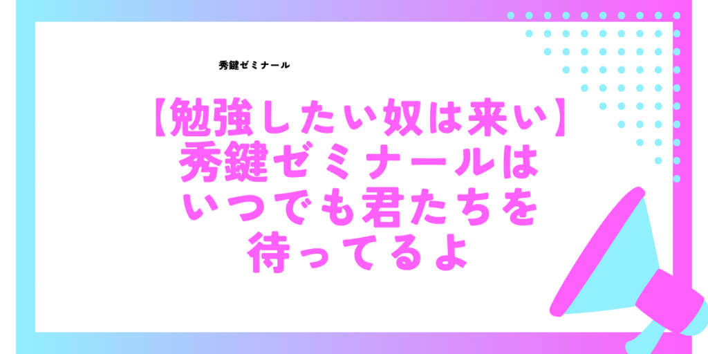 【勉強したい奴はこい】秀鍵ゼミナールはいつでも君たちを待ってるよ