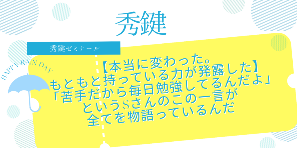 【本当に変わった。もともと持っている力が発露した】 「苦手だから毎日勉強してるんだよ」というSさんのこの一言が全てを物語っているんだ