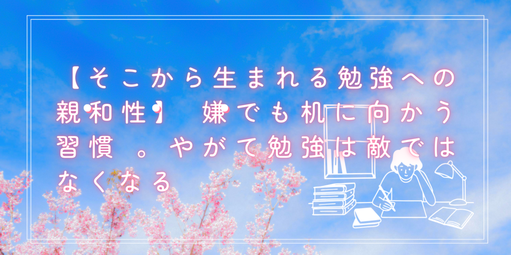 【そこから生まれる勉強への親和性】 嫌でも机に向かう習慣 。やがて勉強は敵ではなくなる