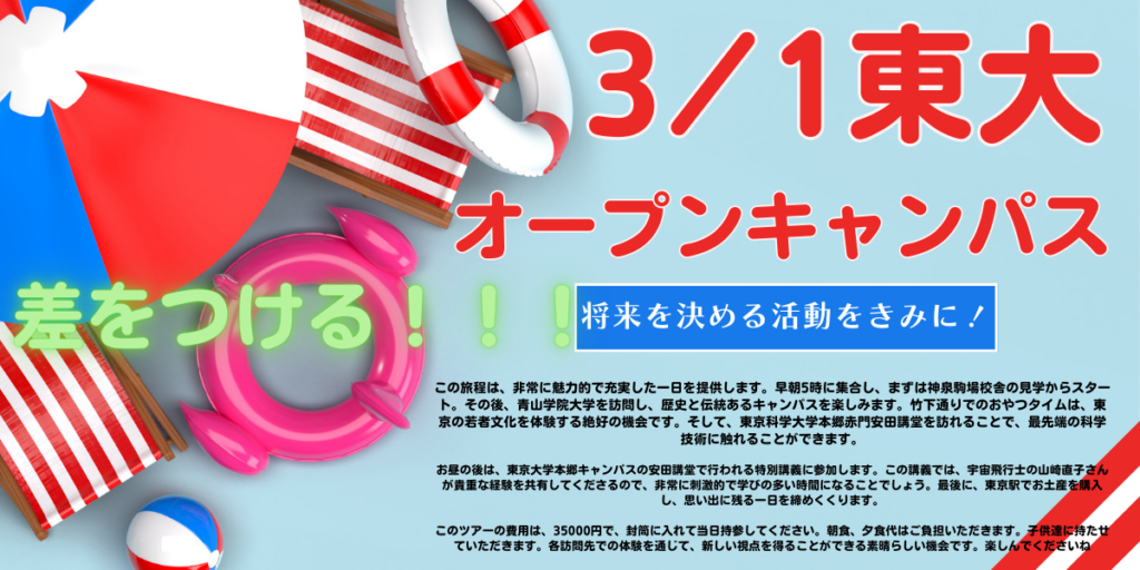 明日はいよいよ待ちに待った秀鍵ゼミナール恒例の東大オープンキャンパス