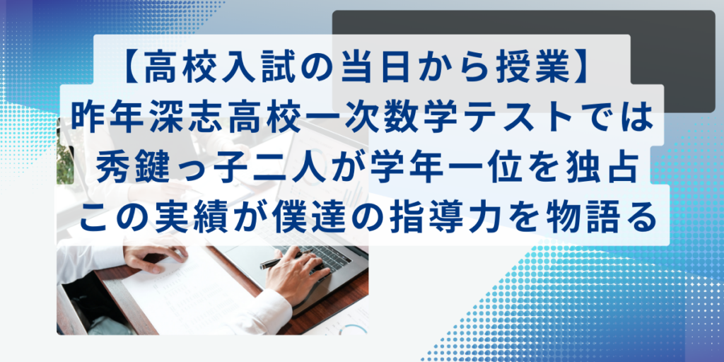 【高校入試の当日から授業】 昨年深志高校一次数学テストでは 秀鍵っ子二人が学年一位を独占 この実績が僕達の指導力を物語る